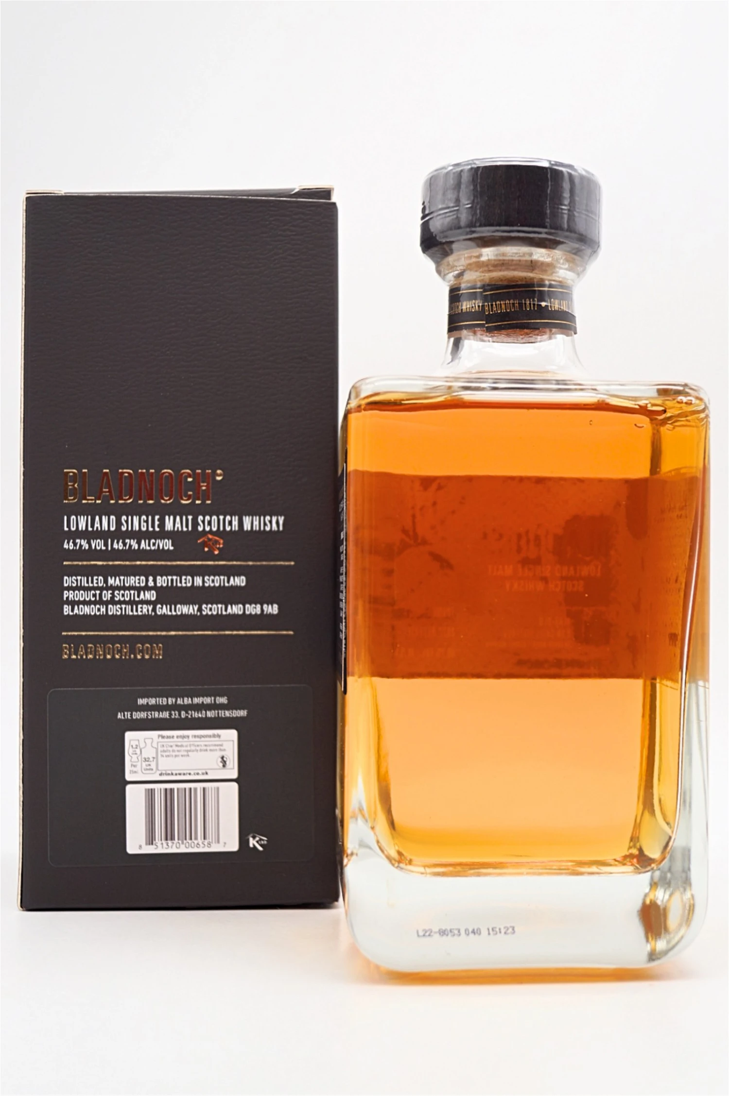 Die limitierte Erstauflage des Bladnoch 11 Year Old Single Malt Whisky wurde in einer Kombination aus Ex-kalifornischen Rotwein- und Ex-Bourbon-Fässern für lebendige, erfrischende Noten von Äpfeln, Kirschen und Vanille gereift.