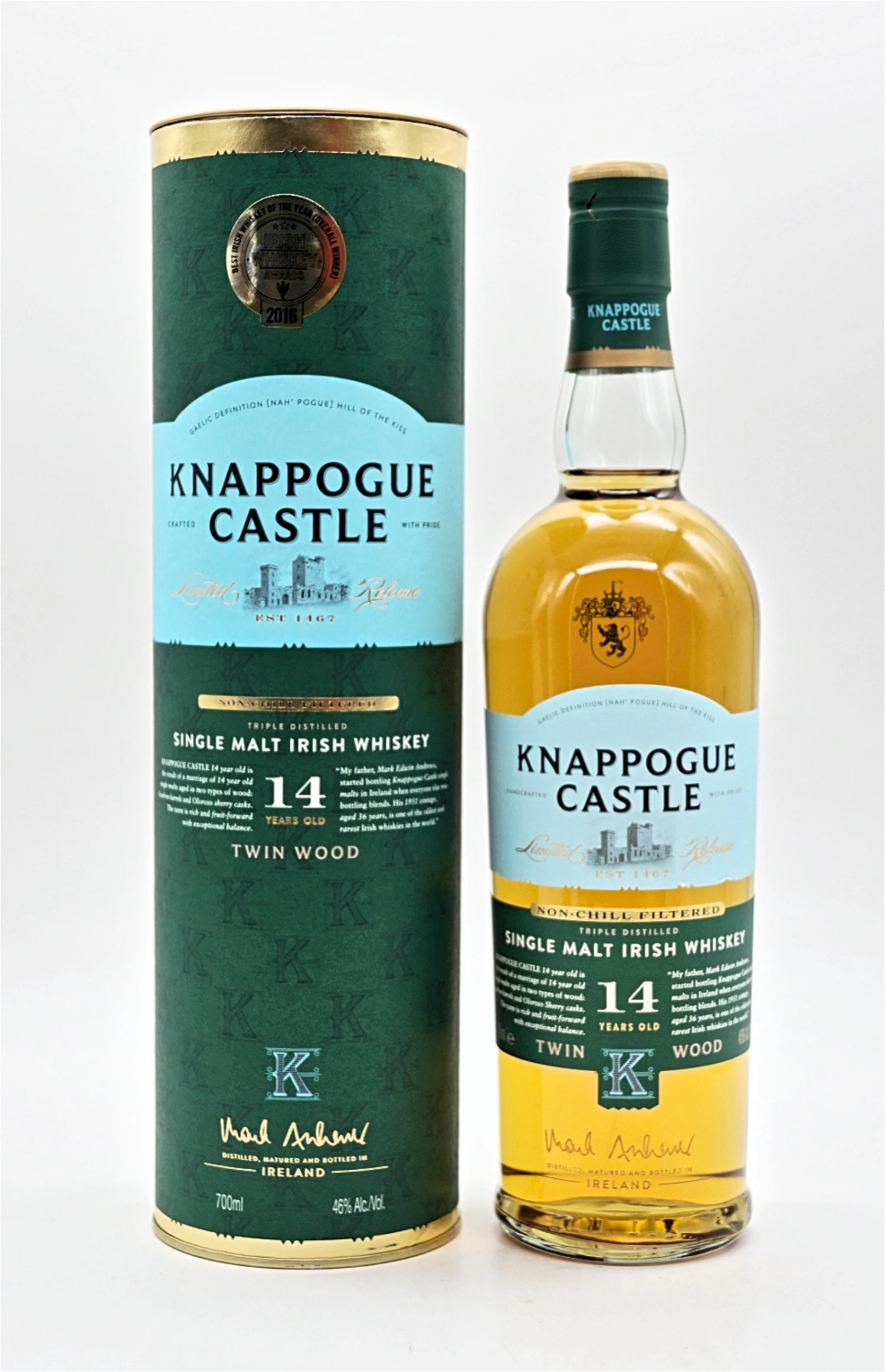 Der Spiritus wird dann in Bourbon-Eichenfässer gefüllt, bei einer relativ konstanten Temperatur gelagert und mindestens 12 Jahre lang gereift, bis das richtige Gleichgewicht zwischen Geschmack und milder Anziehungskraft erreicht ist. Die Sondereditionen Knappogue 14 und 16 enthalten die einzigartige Verbesserung des Oloroso-Sherrys.