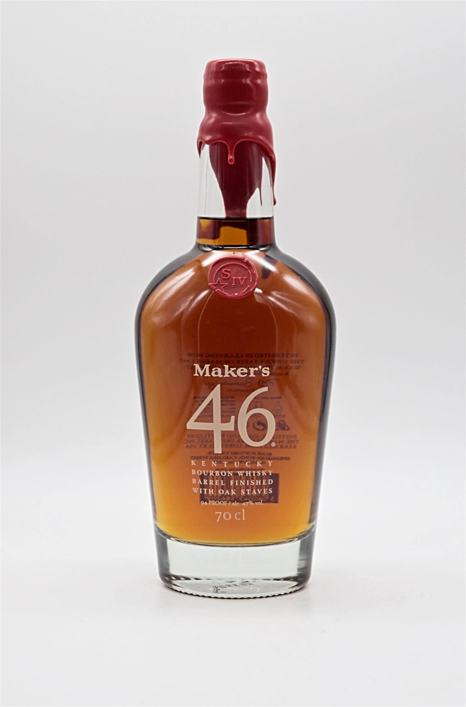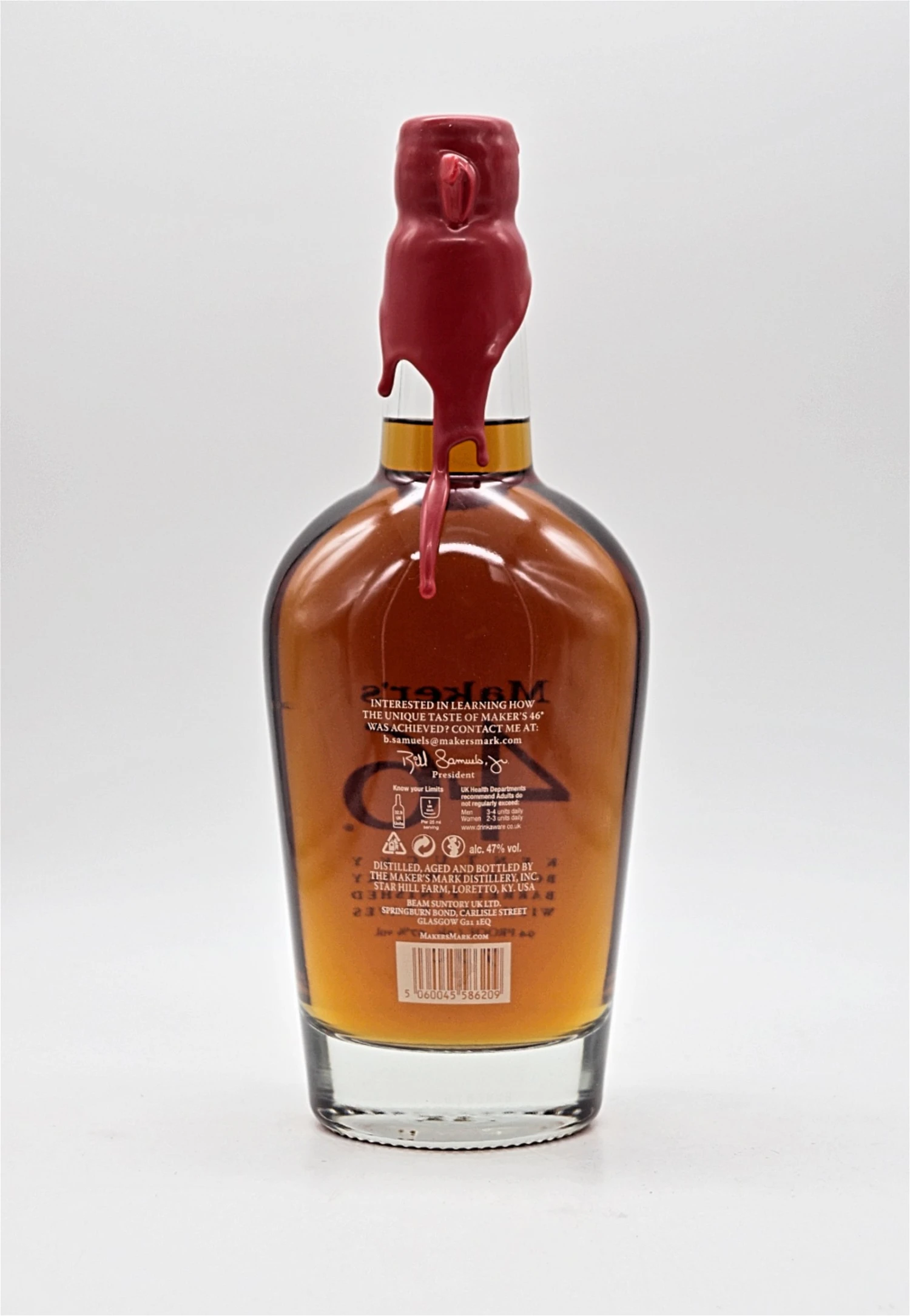 Der erste Bourbon aus der Wood-Finishing-Series, Maker’s Mark 46™, wurde von Bill Samuels Jr. kreiert, um die Aromen zu verstärken, die er an Maker’s Mark® liebt. Das innovative Finishing-Verfahren beginnt mit voll ausgereiftem Maker’s Mark® in Fassstärke. Dann legen sie zehn frische, getoastete Holzstäbe aus französischer Eiche in das Fass und lagern es bis zum Finish neun Wochen in unserem Kalksteinkeller. Das Ergebnis ist Maker’s Mark 46: Kräftiger und komplexer, aber ohne den für länger gereifte Whiskys typischen bitteren Geschmack.
