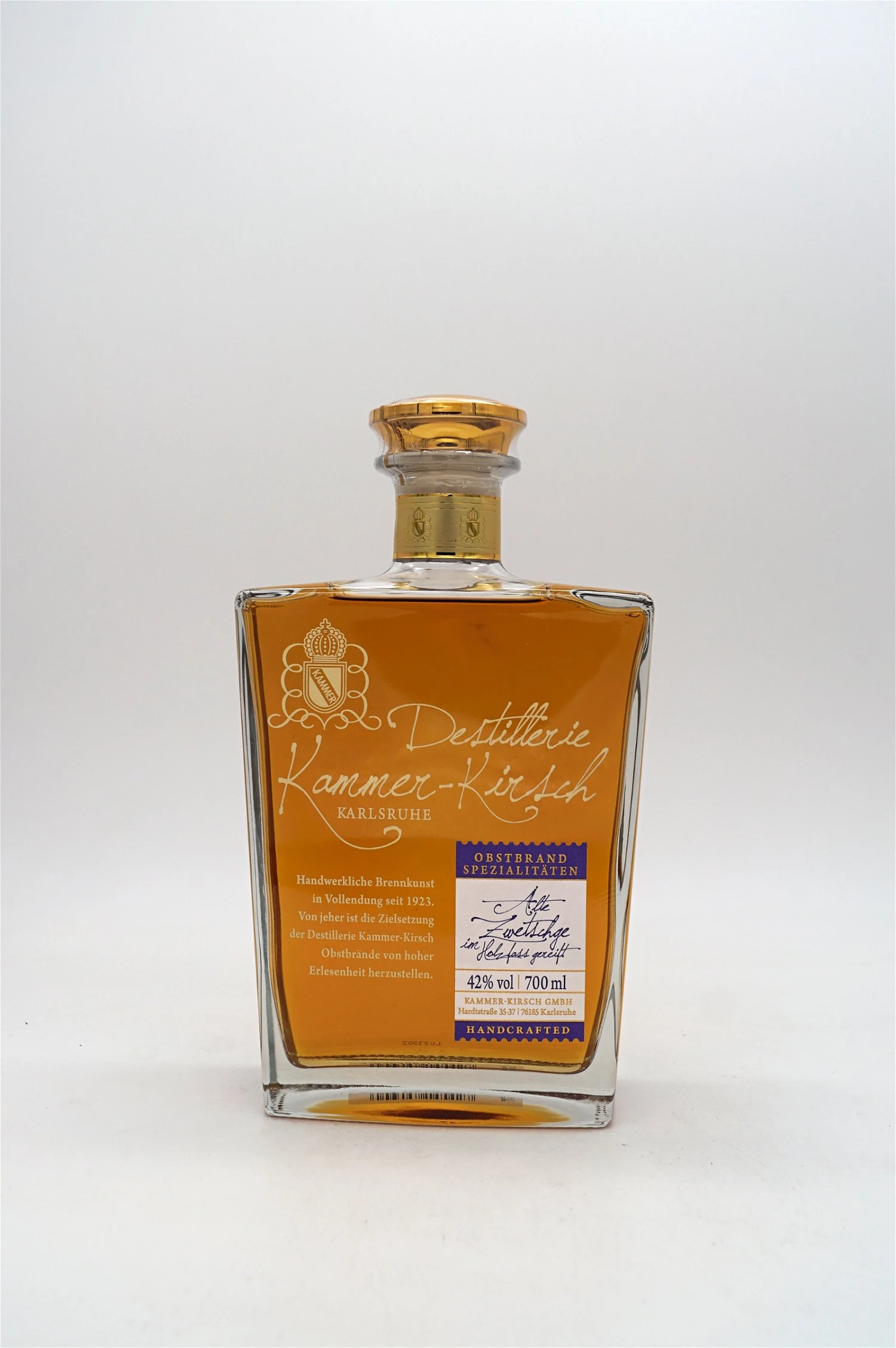 Die Obstbrände werden bei Kammer-Kirsch zunächst aus gereiften Früchten im doppelten Brennverfahren destilliert und anschließend in temperaturbeständigen Kellern gereift. Kirschwasser, Mirabellenbrand und Himbeerbrand reifen dabei in lasierten Tonkrügen, während Apfelbrand und Zwetschgenwasser eine lange Reifezeit in Limousin Eichenfässern erfahren.