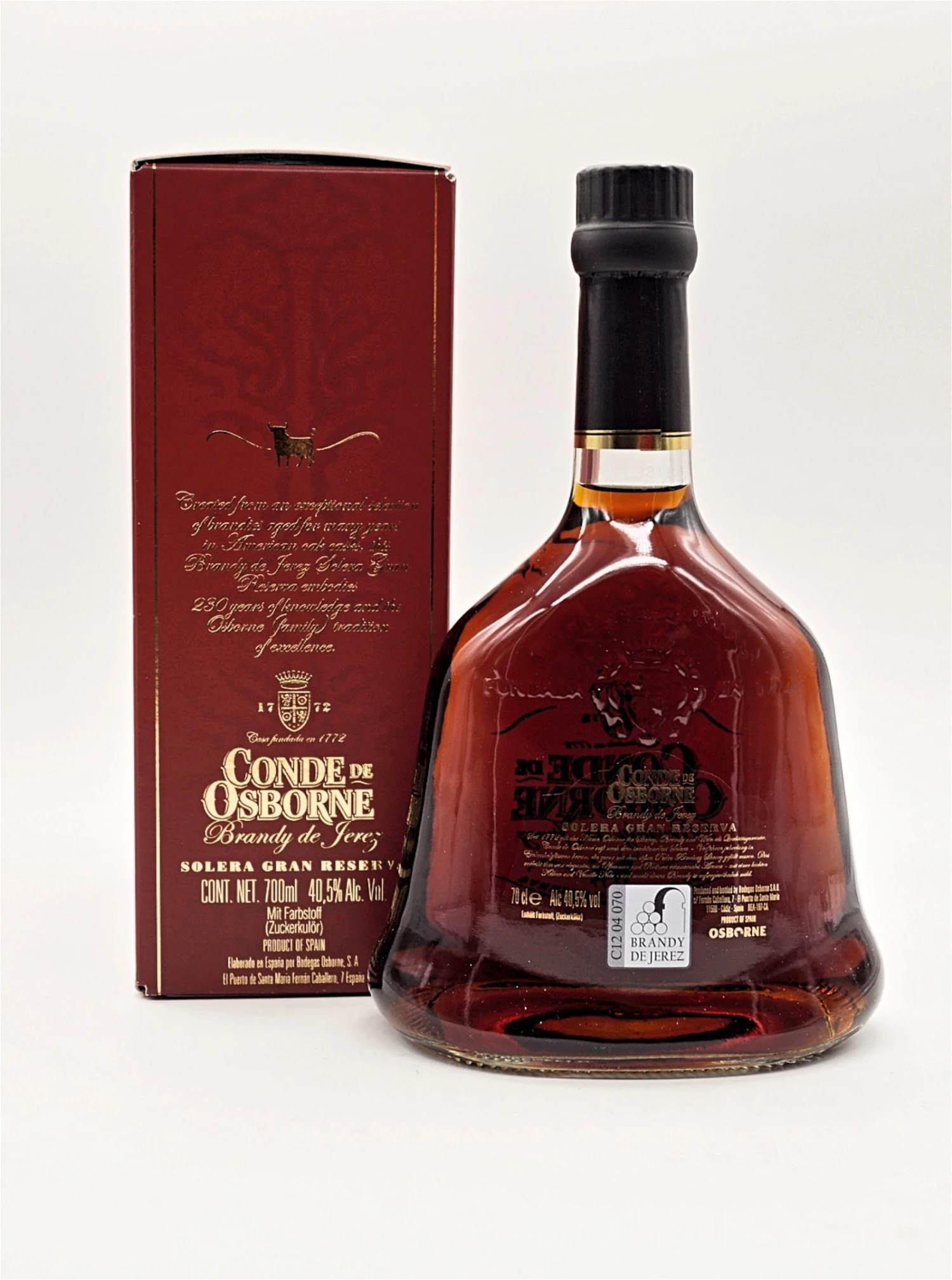 Das traditionelle Solera-Verfahren, welches seit Jahrhunderten im Hause Osborne angewandt wird, ist nach der untersten Lage eines pyramidenartigen Fasslagers benannt. Zur Abfüllung gelangt stets nur ein kleiner Teil aus dem Inhalt der untersten Fassreihe. Die entnommene Menge wird aus dem jeweils darüber liegenden Fass ersetzt, wobei die oberste Reihe mit frischem Destillat aufgefüllt wird. So „wandert“ das Destillat über die Jahre von einem Fass zum nächsten und bewahrt dadurch über Jahrzehnte hinweg seinen typischen Charakter. Conde de Osborne ist ein Solera Gran Reserva der Luxusklasse, der mehr als 10 Jahre in Fässern aus Weißeiche reift, die zuvor für die Alterung des süßen Sherrys Pedro Ximénez benutzt wurden.