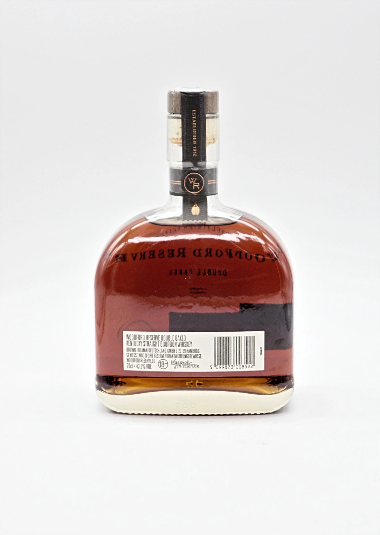 Woodford Reserve wird in neuen, verkohlten Fässern aus weißer Eiche aus eigener Herstellung gereift. Das Fass ist eine wichtige Zutat in dem Prozess und trägt zu Geschmack, Komplexität und Ausgewogenheit bei. Deshalb stellen sie in ihrer eigenen Böttcherei Bourbonfässer her, rösten und verkohlen sie. Nach dem Befüllen reifen die Fässer in einzigartigen Lagern mit Wärmezyklen bis zur Reife.