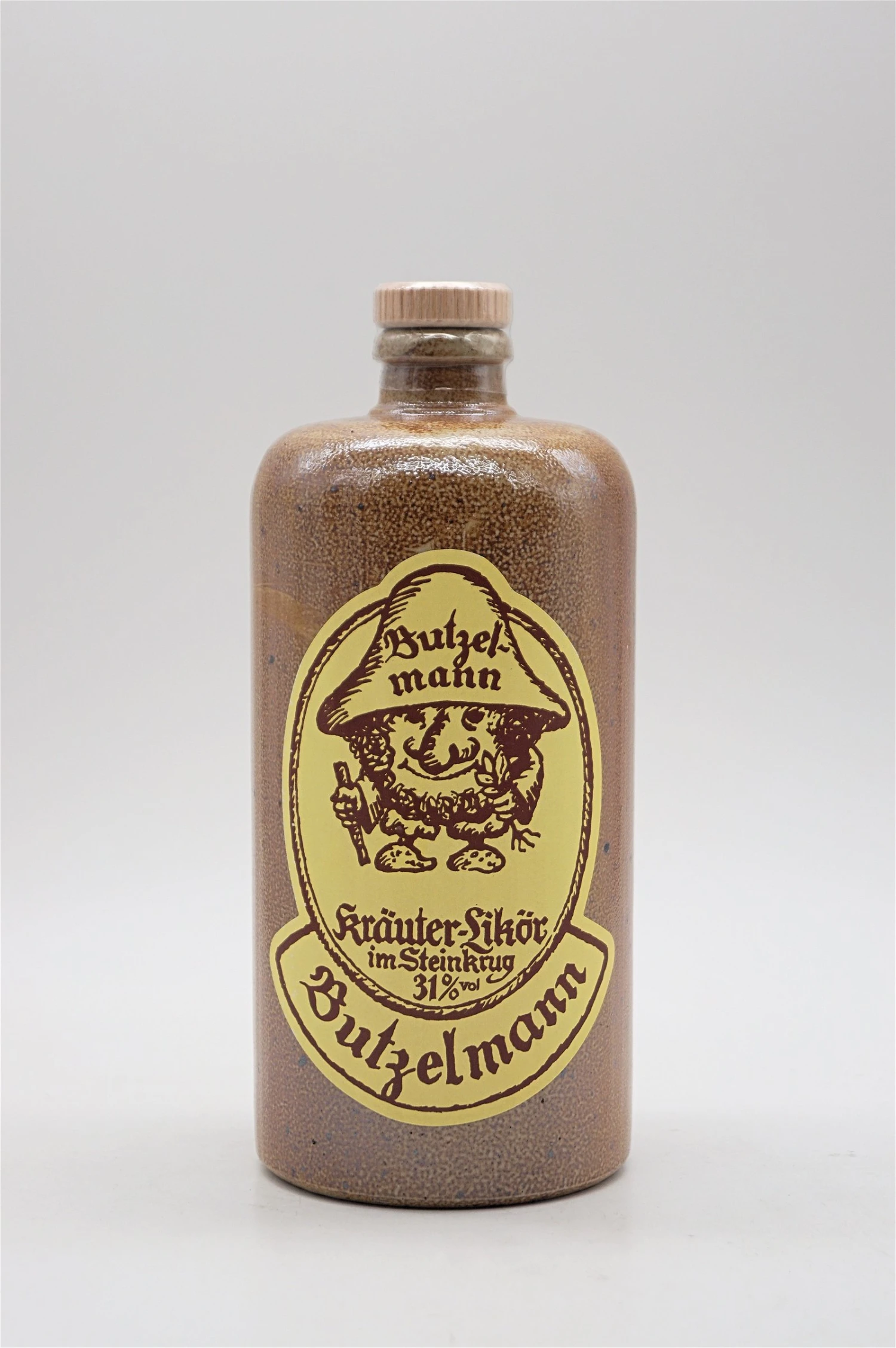 Die Legende vom Butzelmann besagt, das vor etwa 500 Jahren ein runzliger alter Mann in den Wäldern Kräuter sammelte. Bei Neumond legte er diese in Alkohol und gab ein wenig Honig bei. Nachdem die Mixtur 7 Monde gestanden hatte, war ein wohlschmeckendes, wundersames Labsal daraus geworden. Wir haben nie erfahren, wie Urgroßvater das Butzelmann-Rezept erlangte. Er bereitete weiterhin den wohlschmeckenden Trunk und nannte ihn zur Erinnerung an den wundersamen Alten „Butzelmann“. Heute werden die Kräuter natürlich nicht mehr bei Neumond eingelegt, aber die Rezeptur ist die gleiche. Damit Butzelmann Kräuterlikör seinen guten Geschmack und seine Wirkung lange behält, wird er lichtgeschützt in rustikale Steinkrüge abgefüllt.