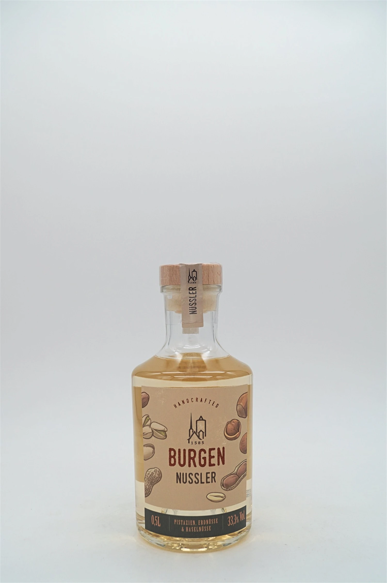 Im Burgen Nussler finden sich gleich drei verschiedene Nüsse in einem Destillat wieder. Die Pistazien sorgen für das cremig feine und butterartige Aroma, welches durch die trockenen und erdigen Geschmacksausprägungen der Erdnuss wieder in Balance gebracht wird. Die Haselnuss rundet durch ihre leicht bitteren und würzigen Noten das rundum nussige Geschmackserlebnis ab.