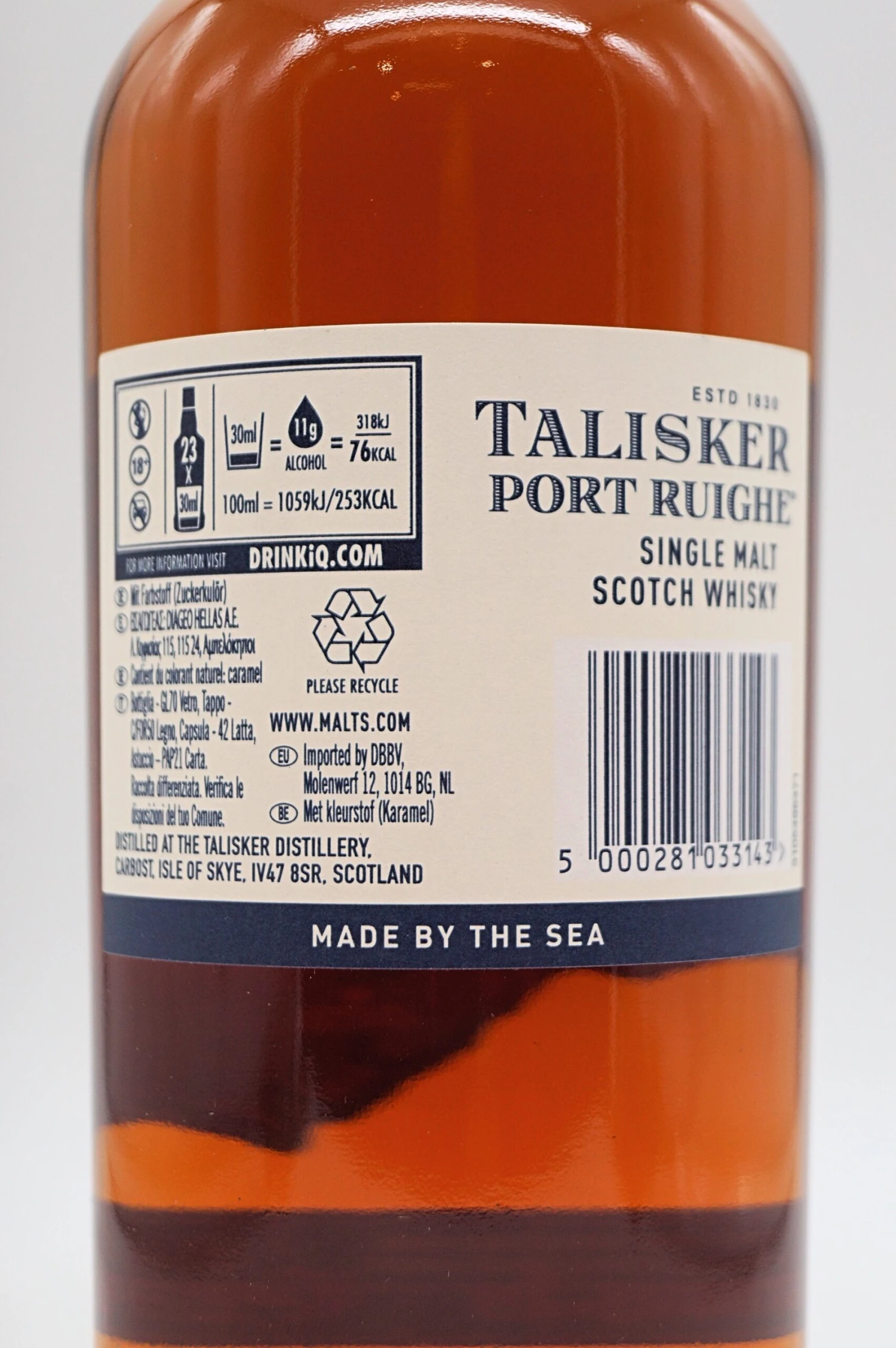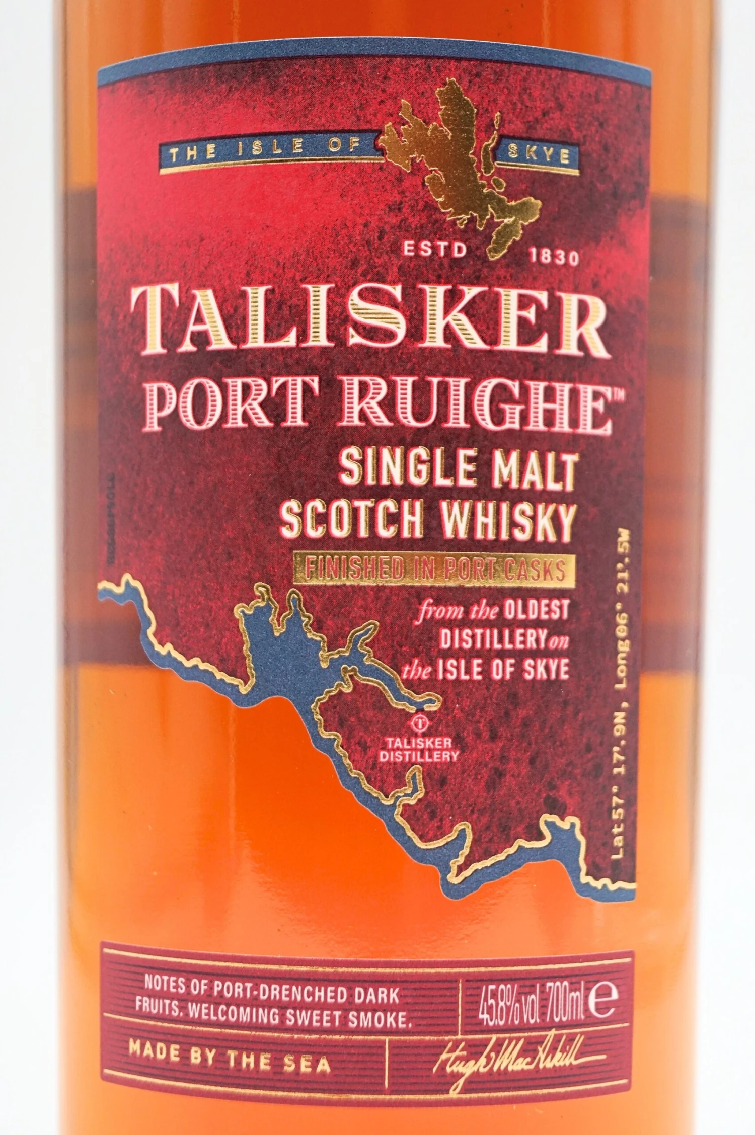 Der maritime, torf-rauchige Charakter von Talisker wird durch das Finish in Portweinfässern mit einem Potpourri dunkler Früchte verfeinert. Entdecken Sie mit dem Talisker Port Ruighe eine fruchtige, würzige Variante des klassischen Talisker mit starken 45,8% Vol. – perfekt als Geschenk oder für deinen Whiskyschrank.
