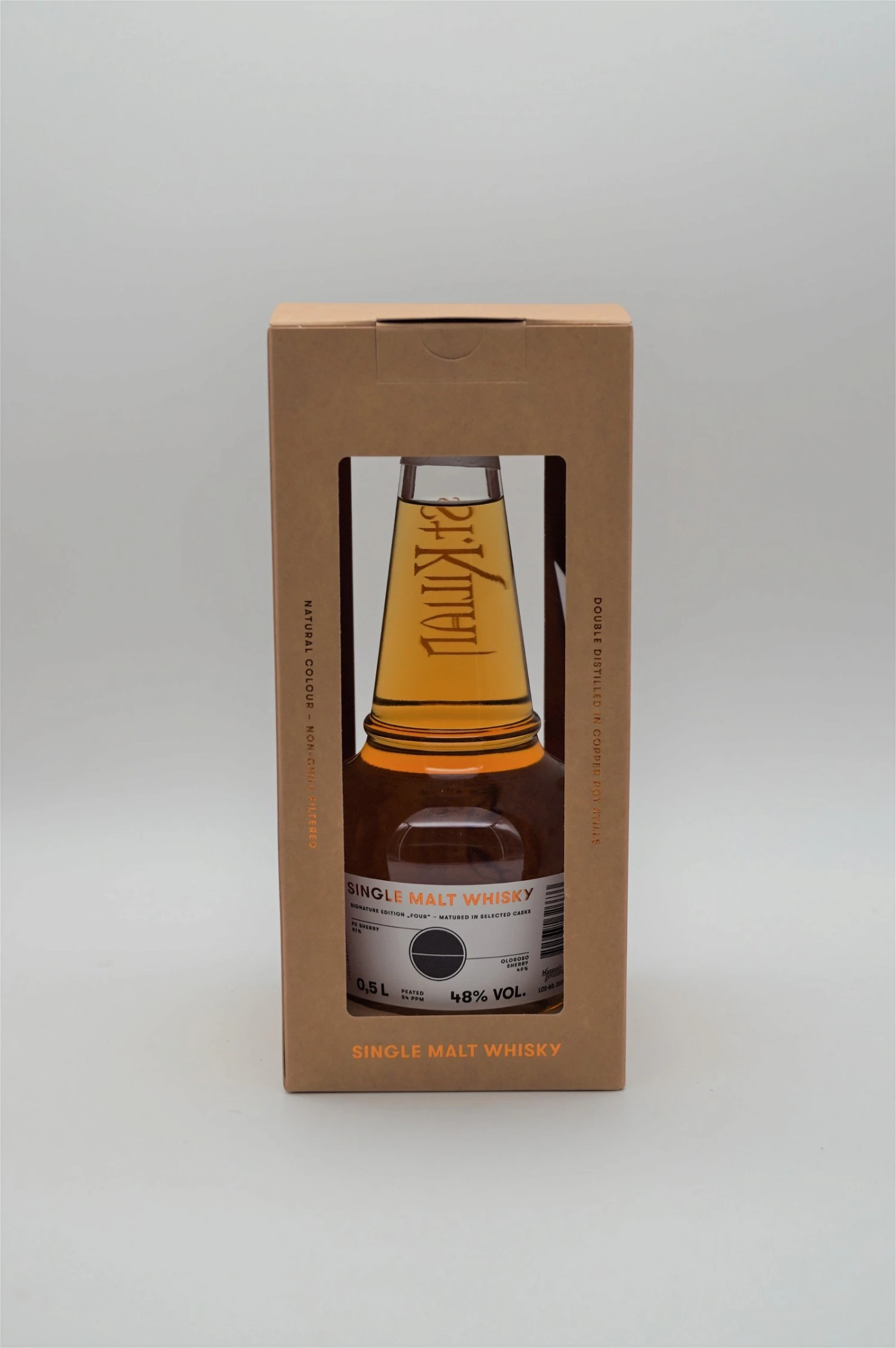 St. Kilian steht für Vielfalt: mehr als 170 unterschiedliche Fasstypen lagern derzeit in den Warehouses der Destillerie. Sie sind der Ausgangspunkt der Signature Edition – einer Reihe individueller Abfüllungen mit jeweils eigener Fass-Handschrift. Die aromatische Bandbreite von St. Kilian beweist nun der vierte Whisky – denn der „Four“ zieht alle Geschmacksregister: überraschend intensiv, würzig und rauchig.