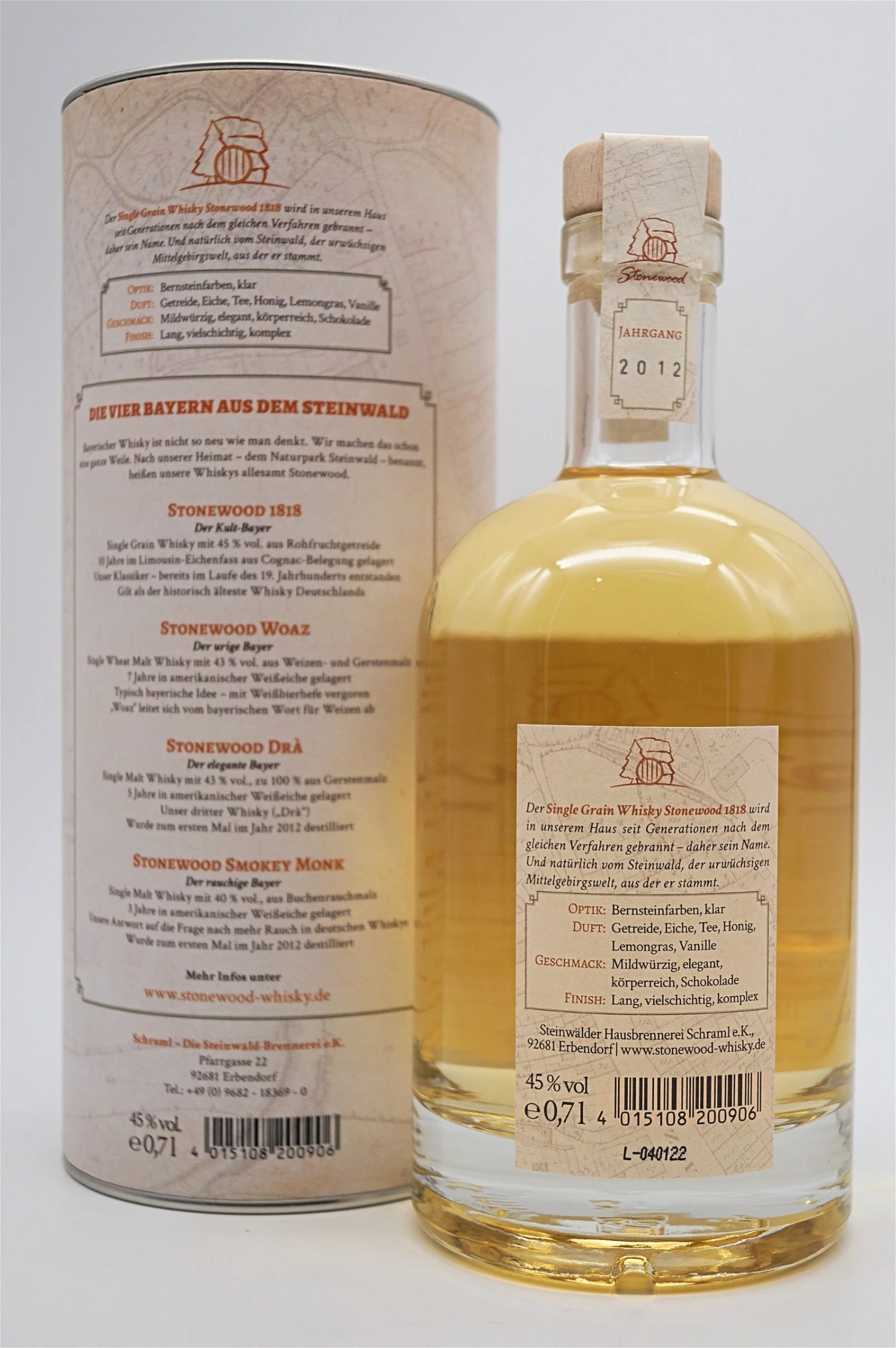 Der Single Grain Whisky Stonewood 1818 wird in unserem Haus seit Generationen nach dem gleichen Verfahren gebrannt – daher sein Name. Und natürlich vom Steinwald, der urwüchsigen Mittelgebirgswelt, aus der er stammt.