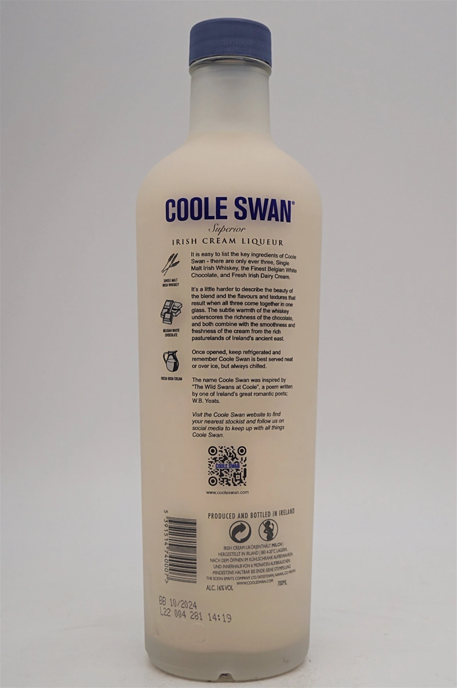 Coole Swan ist der einzige irische Sahnelikör, der irischen Single Malt Whisky, belgische weiße Schokolade und frische irische Sahne kombiniert, um ein unverwechselbares, frisches, glattes, samtiges, lang anhaltendes und cremiges Geschmackserlebnis zu bieten, das Sie genießen und genießen können.