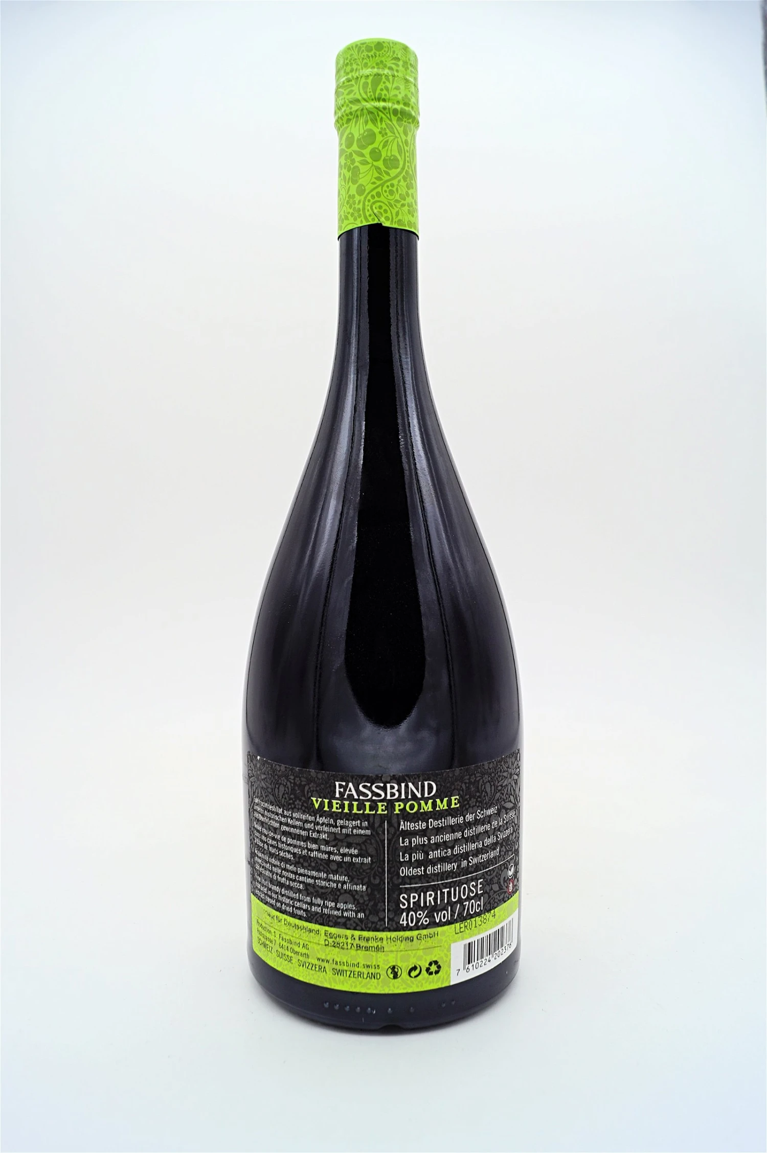 Der frisch destillierte Apfelbrand ruht zuerst während mindestens zwei Jahren in Edelstahltanks und reift danach während 14 bis 18 Monaten in Eichenholzfässern. Nach Abschluss des Reifeverfahrens wird das Apfel-Destillat mit einem hausgemachten Bonficateur weiter veredelt, um ihm das herrliche Aroma und die dezente Süsse zu verleihen, was diesen Vieille Pomme so einzigartig macht.