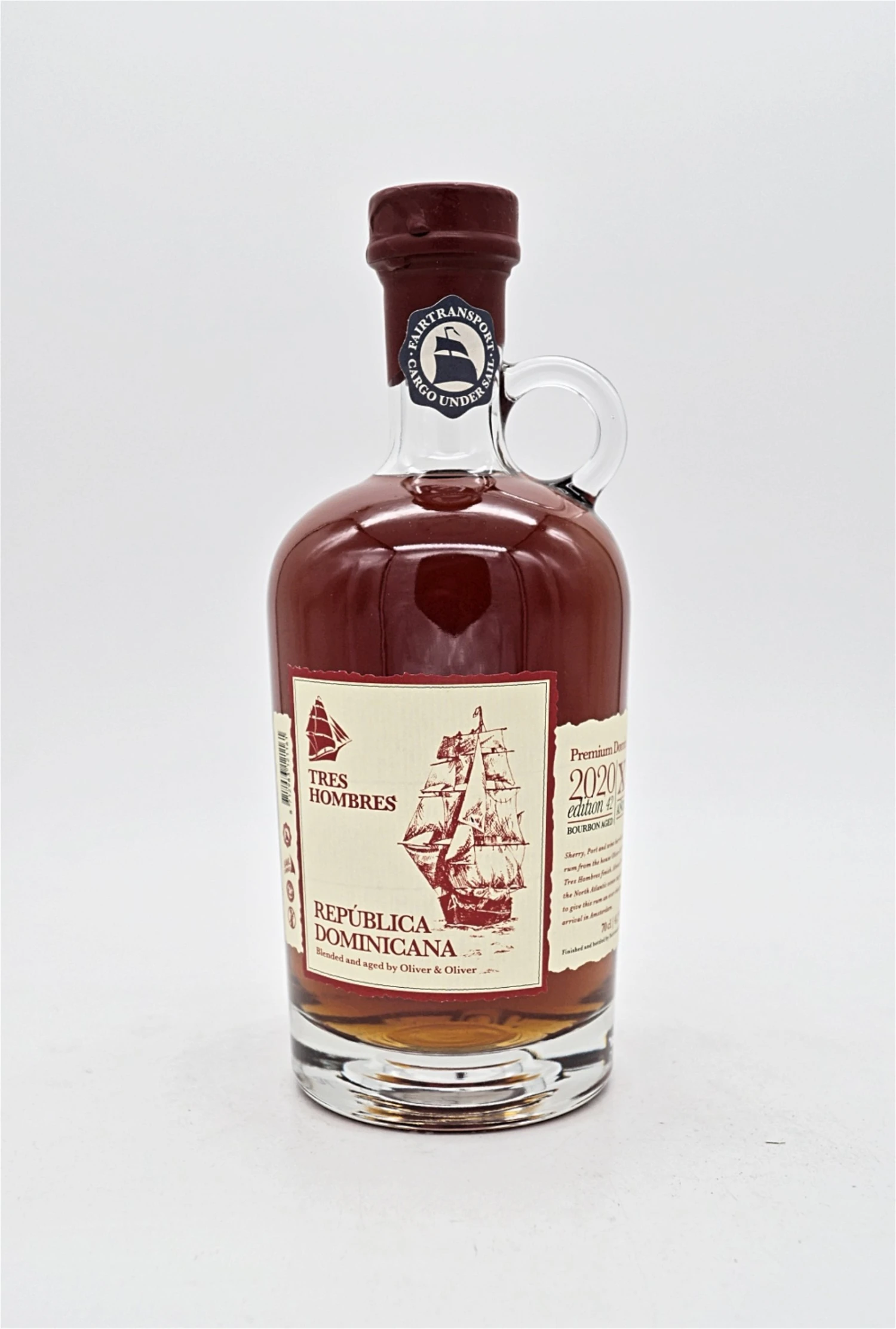 Dieser Rum reifte 18 Jahre bei Oliver & Oliver in einer Bourbon Solera in Santo Domingo. Anschließend reifte er 4 Monate beziehungsweise 4.142 nautische Meilen in Sherry oloroso, Port und Weinfässern an Bord der Tres Hombres nach.